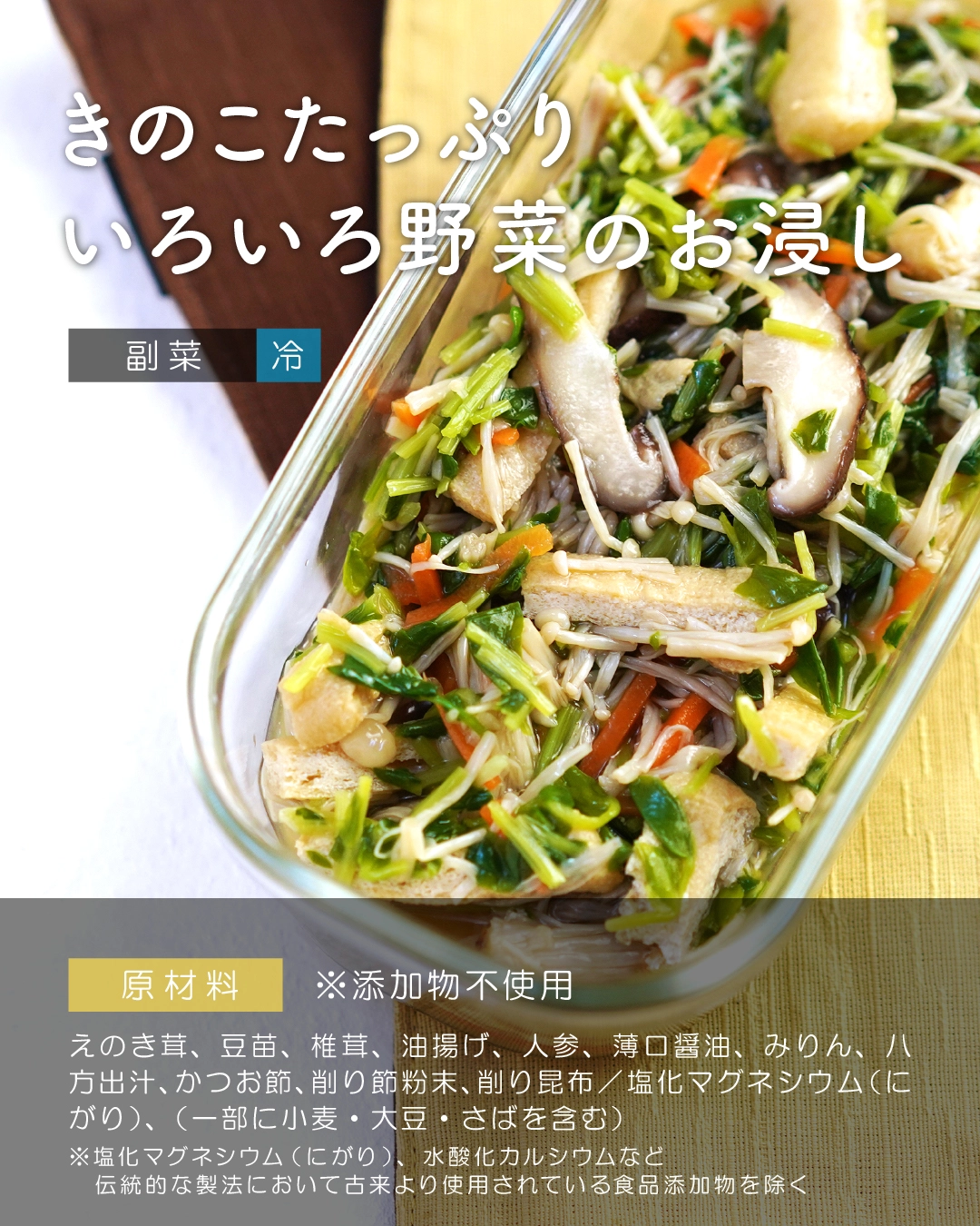 徹底的に「添加物不使用」にこだわって調理した出来立てのお惣菜を、