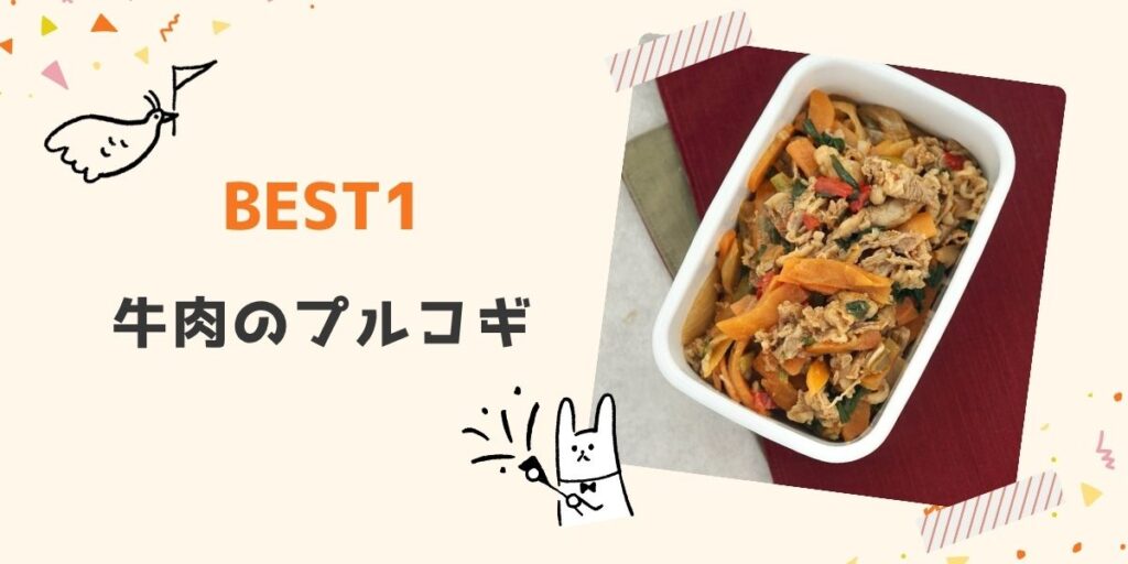 「牛肉のプルコギ」はいつも安定した評価をいただいております✨ 辛くないコチュジャン使用なので、お子さまも安心して食べられます。大人の方にも満足いただけるよう、味のバランスを工夫しました👩🍳